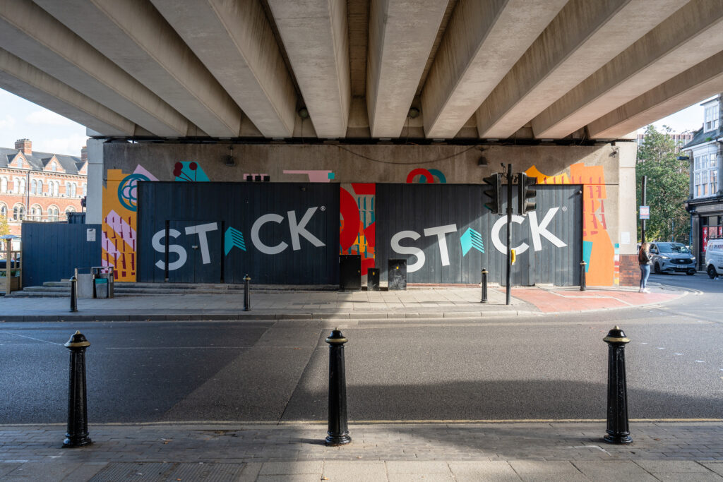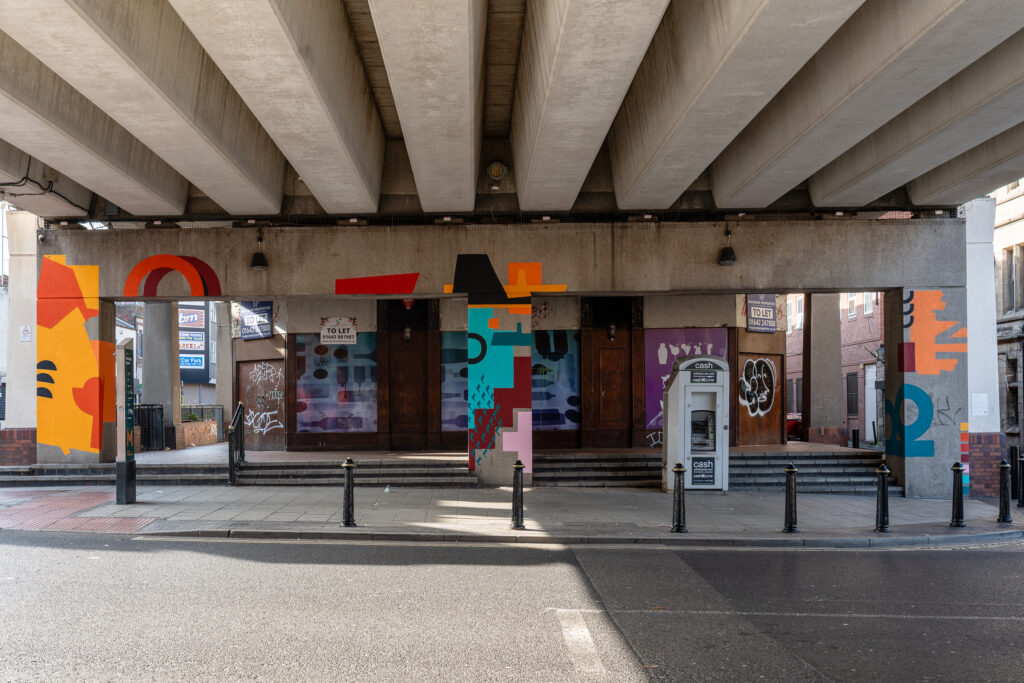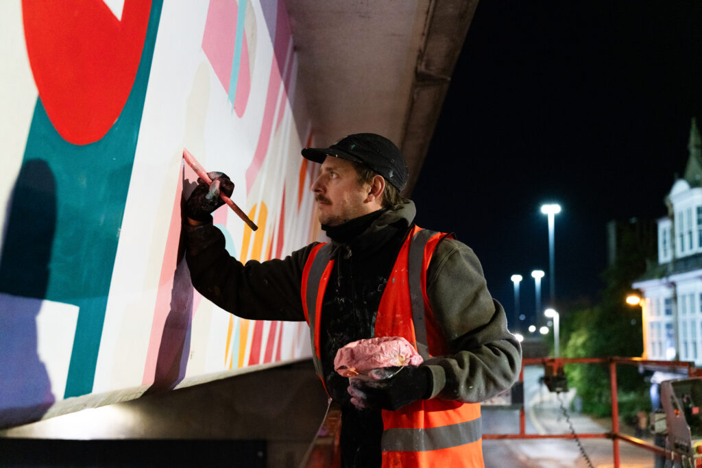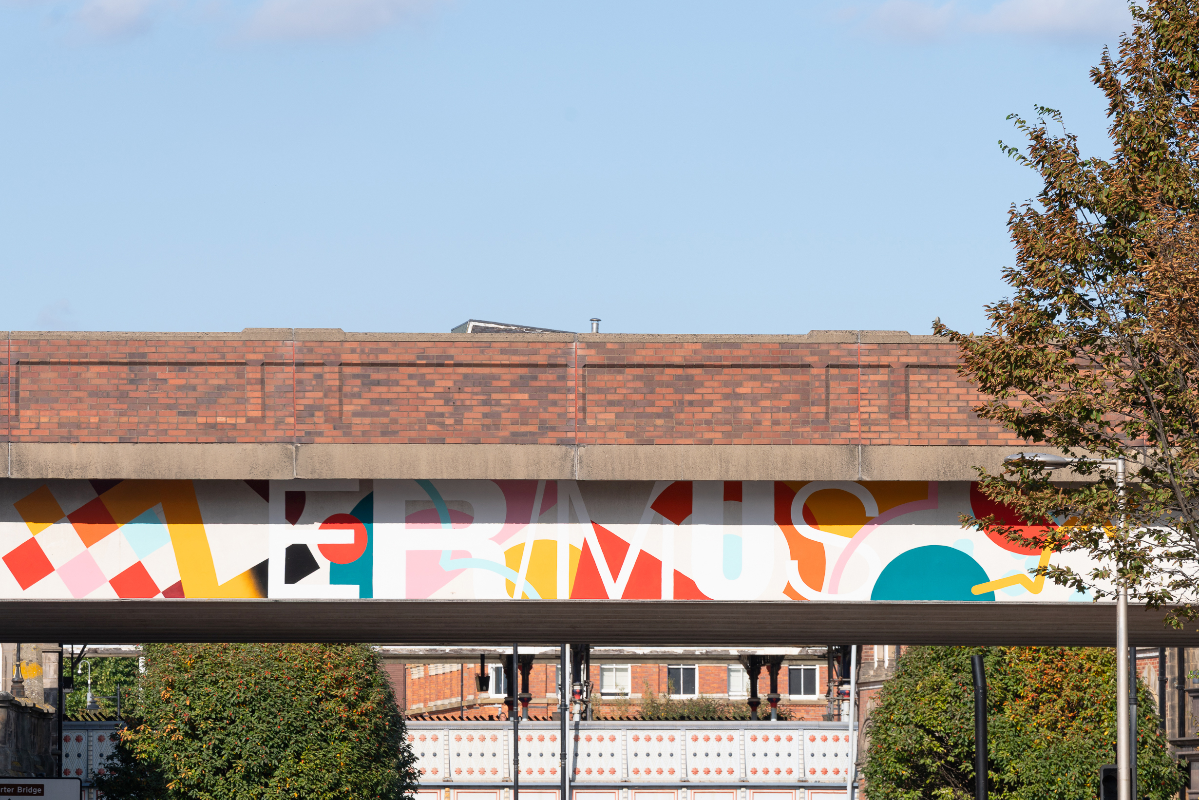 Nick Blaney, aka Goodnight Vienna, was commissioned to produce a large scale mural themed on the motto of Erimus/We Shall Be, on the overhead sections of the A66 flyover on Albert Road, which he installed in early September 2025.